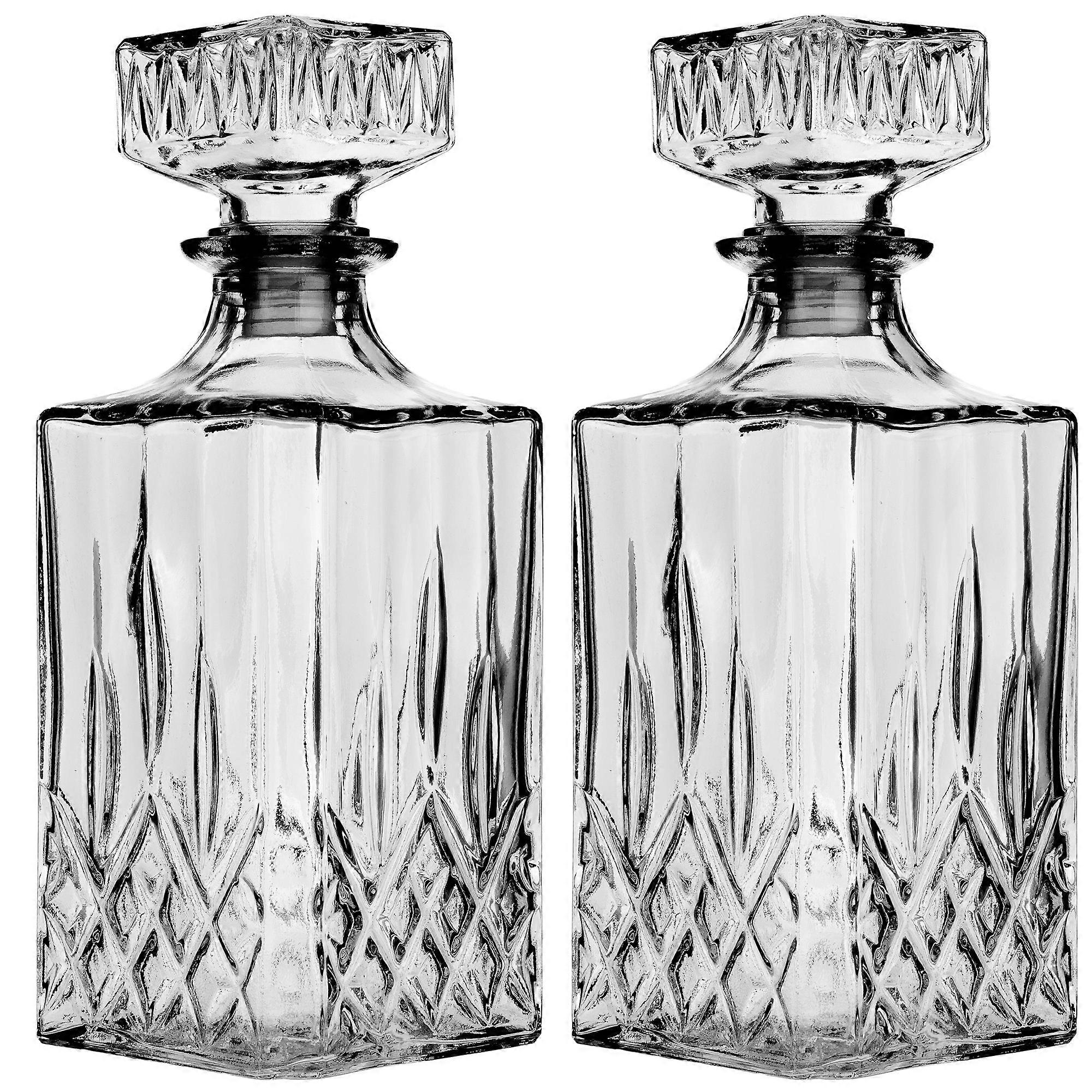 KADAX Karafka Kryształowa 0,85L do Whisky z Diamentowym Wzorem, 2szt