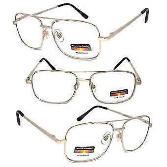 1 Pair Metal Frame Aviator No Line Progressive Trifocal Clear Lens Spring Hinge Reading Glasses - Better Then Bi-Focal bifocal.