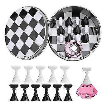 Product description Material: Crystal + Plastic Bracket base color : Pink, purple, transparent Box Size: 9.2*5.2cm Holder Size: 2.5*1.5cm Package Includes: 1*Metal Box 1* Crystal Base 12* Nail Holders(6*Black & 6*White) 1.Perfect SetOne set (1 base + 12 nail tip stand holders). Design with magnetic bottom, you can use it alone or fix it on the base to use. Makes your nails look more fashionable and attract attention form around. 2.Multi-Function The crystal holder fits in your hand comfortably as you work on your nail art. It can not only be used as practice stand but also can be used to display nail art, widely use for nail art practice or nail art display. 3.Safe&Non-toxic MaterialMade of non-toxic materials, fingernail stands are sturdy and durable for long time use, mounting putty will not leave a mark or stain, you can use them with confidence. 4.Magnet Design Each tip stand has a magnetic bottom which allows it to stay attached "upright" to the magnetic crystal diamond.The tip holder stand upright by magnet bottom which is very flexible, easy to install and uninstall. 5.Widely UsedThis Nail Art Display Stand is suitable for nail salon, nail art school, nail art artist, home use. It will be a professional nail art tool for nail technician.