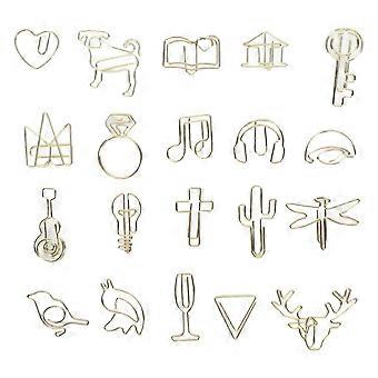100pcs Paper Clip Gold Series Metal Electroplating Processing Rust Proof Creative 20 Shapes Paper Marking Clip for Bookmarks Photo Clips