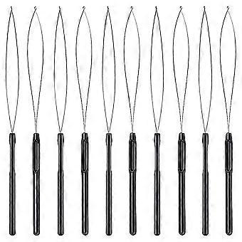 10pcs Hair Extension Loop Threader Hook Tool And Bead Tool Black Loop Threader For Hair Extension O
