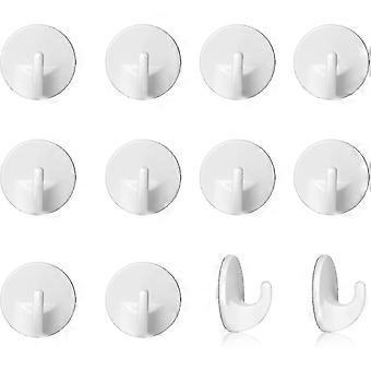 12 Pcs Plastic Hooks Self Adhesive, Funvce White Sticky Hooks Removable Wall