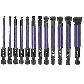 12Pcs Hex Ball End Screwdriver Bits 1 / 4 Inch Shank S2 Alloy Steel Screwdriver Bits Set