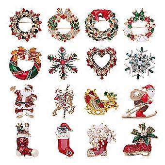 16 Pcs Christmas Brooches for Women Christmas Brooches and Pins Xmas Rhinestone Crystal Set Vintage Snowman Star Garland Reindeer Bells Tree Mixed Wed