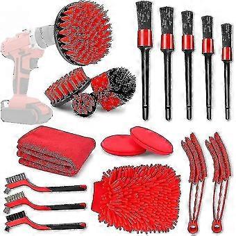 Car Cleaning Tools Kit 18 pcs car cleaning tools kit includes 5 detailing brushes, 4 drill brush attachment,3 wire brushes, 2 air outlet brush, 2 microfiber wax applicator, 1 car wash mitt,1pc towels,for you to clean the interior and exterior of the auto.Detailing Brush Set 5 different sizes detailing brush set are available for any cleaning needs.The smaller detailing brush can get into all the little cracks, the nooks, the lug nuts or tight space. The lager detailing brush suit for cleaning exterior and wider area more efficiently. Such as wheels, air vent, car seats, engine bay, dashboard, emblems and so on.Drill Brush Attachment Set 4pcs essential power scrubber attachments for washing automotive exterior and interior surfaces . Drill brush attachment kit can also allows you to clean faster and easier in the bathroom, kitchen, and outdoor marine applications. Nylon bristles without wire will not scratch tile/grout, porcelain, wood, linoleum, plastic.(Cordless Drill NOT included).Wire Brush Set 3pcs wire brush set includes 1 steel stainless brush, 1 brass brush and 1 nylon brush.Suitable for different surface types, they will address all your cleaning concerns.You can use the stainless steel wire brush for rust removal, while the nylon brush is perfect for clean delicate household appliances. The brass brush is ideal to clean metal surfaces without scratching them.Widely Used 18 pcs car cleaning kit apply to cars, trucks, motorcycles, bicycles, RVs, boats, wheels, tire, rims, spokes, grills, engine bays, exhaust tips, bumpers, inner fender, undercarriage, vents etc,it can be a great gift that keeps on giving for any car buffs, truck enthusiasts or classic car fan.
