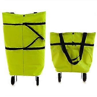 2 In 1 Foldable Shopping Cart Portable Collapsible Shopping Bag With Wheels Lightweight Rolling (Green)