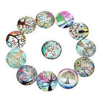 20PCS 18MM DIY Time Glass Decals Creative DIY Glass Patches Round Shape Tree Glass Interface Stylish DIY Tree Pattern Glass Patches for DIY Crafts Mak