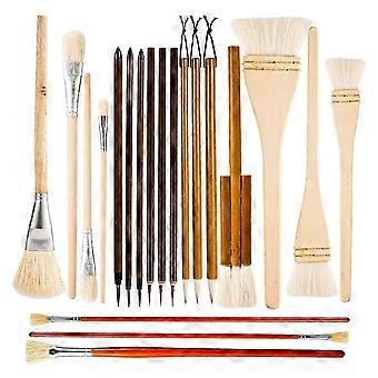 20pcs Pottery Glaze Brushes Set, Ceramic Brushes with Long Handle Different Shapes Wool Art Paintbrush Tool for Artist