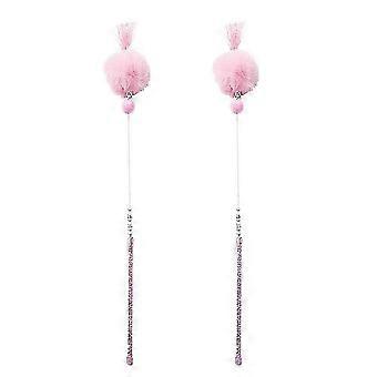 2pcs Colorful Beads Interactive Plush Ball Wand Toy for Cats (Pink)