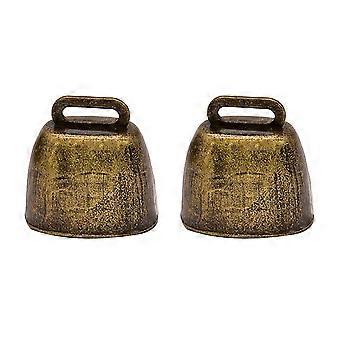 2Pcs Cowbells Noisemaker Square Shape Calling Bell with Handle for Outdoor Football Game Wedding Class Festival Birthday Party Use (Bronze)