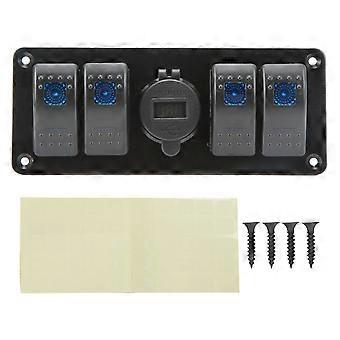 4 in 1 Combination Switch Panel Dual USB Charger LED Voltage Display Fit for UTV ATV Truck Trailer Bus Yacht Boat