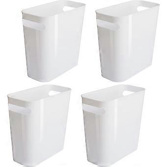4 Pack Plastic Small Trash Can, 1.5 Gallon/5.7 L Office Trash Can, White Trash Bin with Built-in Handle, Slim Waste Basket for Bathroom, Bedroom, Home