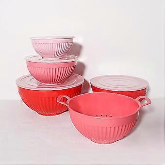 5-Piece Bowl Set + 4 Lids | Nested Melamine 7,8,10,11” Bowls & 9” Colander | for Cooking, Mixing, Baking, Serving | Navy