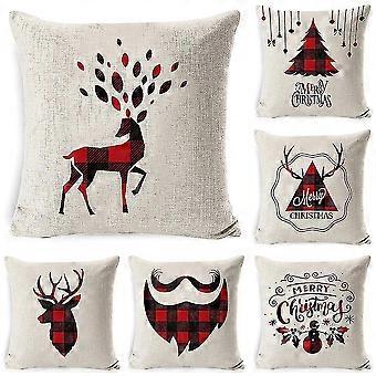 6pcs Color Printing Pillow Case Linen Soft Cushion Cover For Home 45x45cm