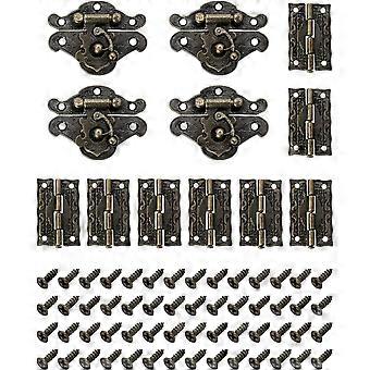 A set of 2 antique retro locks with 4 hinges and 28 screws, used to decorate cabinet boxes
