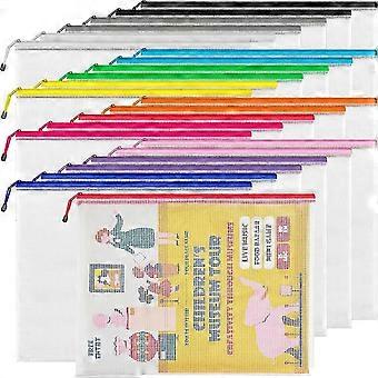 A3 (16.9x12.4 In,24 Pcs) Mesh Zipper Pouch,12 Colors Extra Large Zipper Bags,waterproof File Pouches For Office Supplies