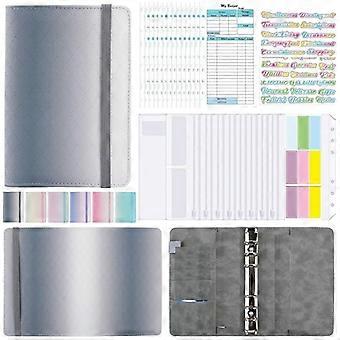 A6 Gradient Macaron Binder Hand Ledger Notebook Leather PU Loose-Leaf Book Cash Budget Book with Zi