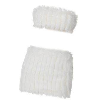 Women 2Pcs Furry Plush Strapless Backless Crop Tube Top and Bodycon Mini Skirt Set Solid Color Faux Furs Outfit Clubwear White S