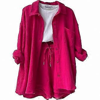 Casual Two-Piece Outfit: Long Sleeve Shirt and High Waist Shorts with Drawstring for Women