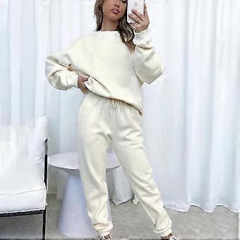 Modern Women's Tracksuit Long Sleeve Pullovers Two Piece Outfit Loose Fit Hooded Sweatshirt And Athletic Pants White XS