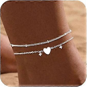 Jewelry Heart Initial Beach Bracelets for Women 26 Letters Double Layer Anklet Anklet Bracelets Beach Jewelry