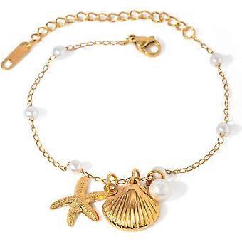Dainty Shell Starfish Anklet with Pearl Beads, Gold-Plated Stainless Steel, Boho Beach Jewelry for Women – Compatible with Summer & Valentine’s