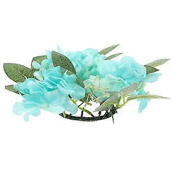 Artificial Rose Hydrangea Candle Ring Table Centerpiece Sky-Blue Plastic and Fabric Decorative 1Set