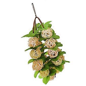 Beige Hanging Rattan Ball for Parrots Made of Plastic with Hook for Bird Cage Decor 1 String