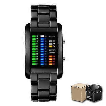 Binary Watch Resistant Watches Men 3atm Waterproof Alarm Chrono Rectangle Dial Canlender Black Light Tough Structure