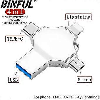 Binful 4in1 Usb 3.0 Flash Drive 256gb 128gb 64gb 32gb Metal Pendrive For Iphone Ipad Iso Android Otg Type C Usb Memory Stick