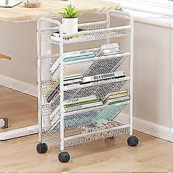 Bookshelf Student Book Cart Stand - Rolling Document Office File Shelves, Multi-Functional Storage Cart, Durable Design