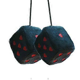 Car Rearview Mirror Pair Fuzzy Plush Dice Retro Square Embroidery Heart-shape Decoration Hanging Dice Car Accessories Xi [PB]