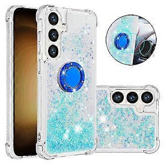Case for Samsung Galaxy S24 FE 5G Bling Flowing Liquid Floating Sparkle Glitter Bumper with Rotation Ring Kickstand Compatible with Samsung Galaxy S24