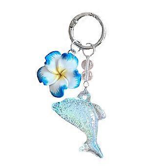 Charming Dolphin Flower Keychain Compact Size Decorative Hanging Charm Accessory For Backpacks Wallets Or Keyrings White and blue