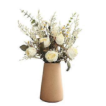 Chic & Timeless, Silk Flower Arrangements Offer A Dash Of Color To Your Decor With Burnt Edge Rose Daisy Tie Grass Combo, No Maintenance Required For