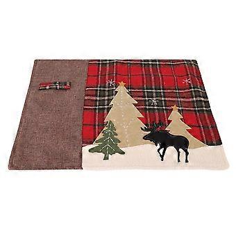 Christmas Theme Plaid Tree Elk Pattern Heat Insulation Fork Placemat Table Mat Decoration