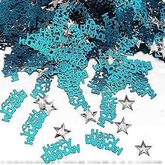 Blue "HAPPY BIRTHDAY" confetti + Silver star Table decoration.-XY