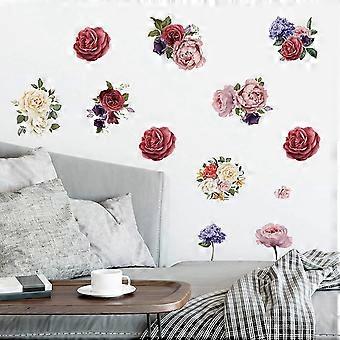 Peony Flowers Wall Decals for Living Room, Delicate Peonies Roses Floral Wall Stickers Murals Elegant Blossom Wall Decor Posters for Girls Room Bedroo