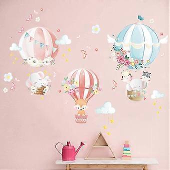 Hot Air Balloon Wall Sticker Cartoon Animal Wall Decal Fox Elephant Butterfly Wall Decor DIY Vinyl Mural Art for Kids Baby Nursery Bedroom Living Room