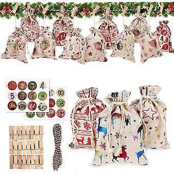Cotton Bedding Advent Calendar - Fillable Large Advent Calendar - 24 Pieces, 12 Patterns