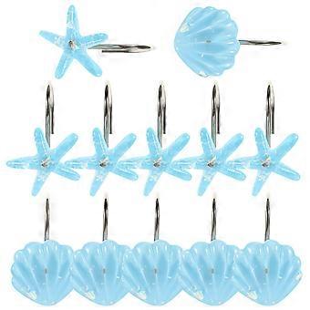 Curtain Hooks 12Pcs Unique Shower Curtain Hangers Sky Blue Enamel Finish For Easy Installation