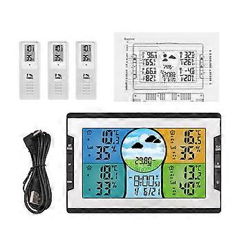 Digital Weather Station with 3 Remote Sensors 328ft/ 100m Indoor Outdoor Temperature Humidity Monitor Alarm Clock with Snooze Thermohygrometer with We