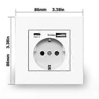 EIOMR EU Standard Power Socket, Single and Double 220V 16A White Black PC Panel EU Socket, Wall Usb Type-C Plugs Outlet for Home