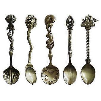 Farfi 5pcs Coffee Spoon Retro Chic Alloy Rust Proof Multi-function Dessert Spoon For Home