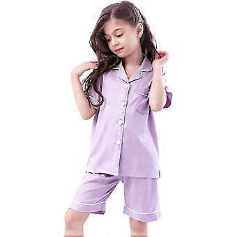 Girls 2 Piece Outfits Kids Short Sleeve Shorts Set Comfortable Home Clothes Button Down Collared Shirts Soft Outfit