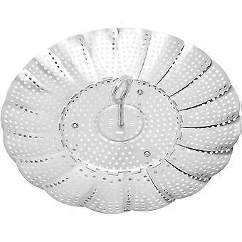 Foldable Vegetable Steam Basket, 304 Stainless Steel, Hole Through Design, Bottom Strengthened Bracket, Lifting Handle for Easy Food Taking, Portable
