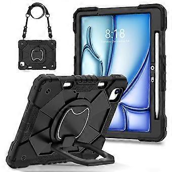 For iPad Air 13 (2024) Case with Shoulder Strap Silicone+PC Kickstand Tablet Cover