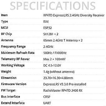 For RP4TD ExpressLRS 2.4ghz Nano Receiver(RP4TD )