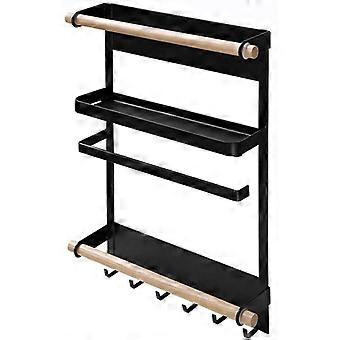 Hanging Shelf Shelf Refrigerator Storage with Suction Cups Spice Rack Wall Shelf Kitchen Storage Spice Shelf Freestanding Herbs (Black)
