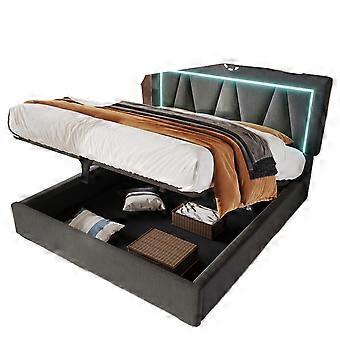 LED Storage Bed Frame Fabric 160x200cm Slatted USB C Charging No Mattress